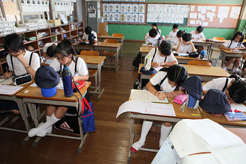 8時30分頃から、教室や図書室で夏休みの宿題をします。