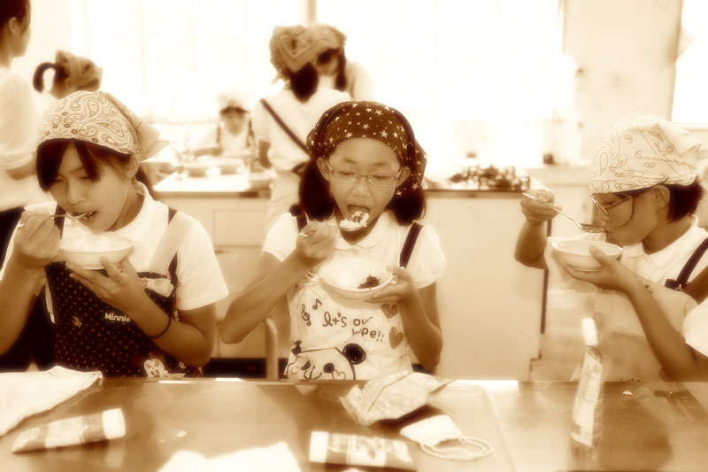 アウトドアクラブと家庭科クラブは、かき氷を作って食べました。