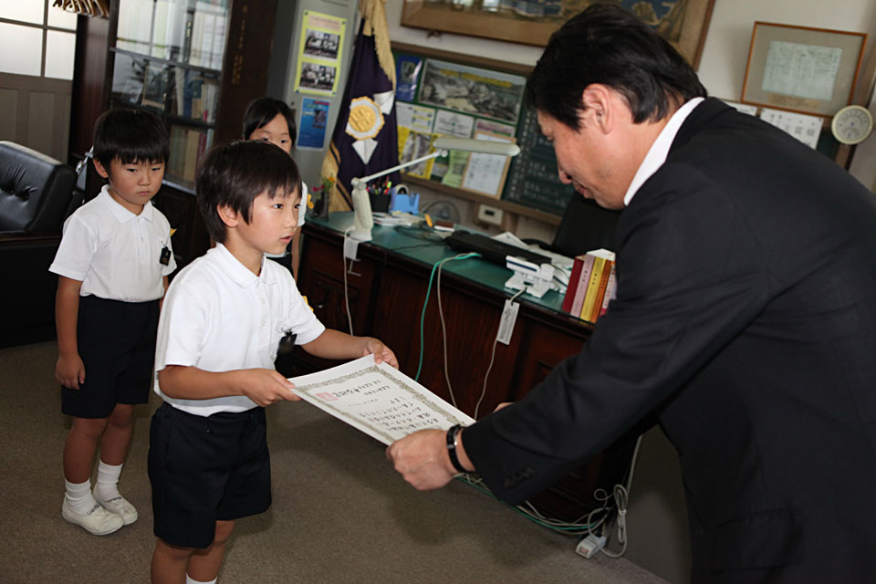 第19回「海の図画・ポスター展」で入選した児童の表彰を行いました。