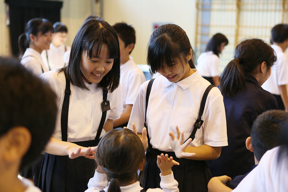 体育館で最後の練習をする6年生の元へ、1年生がやってきました。