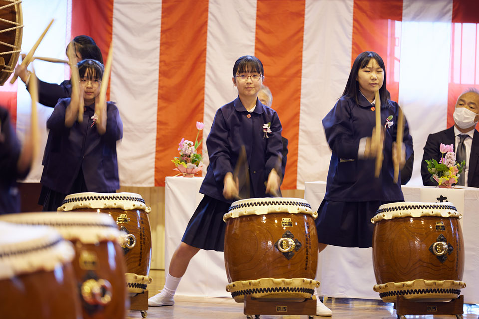 卒業証書授与式で6年2組が、平成15年度の卒業生が作曲した「龍神」を演奏しました。