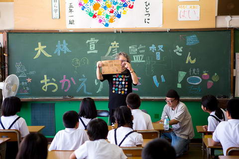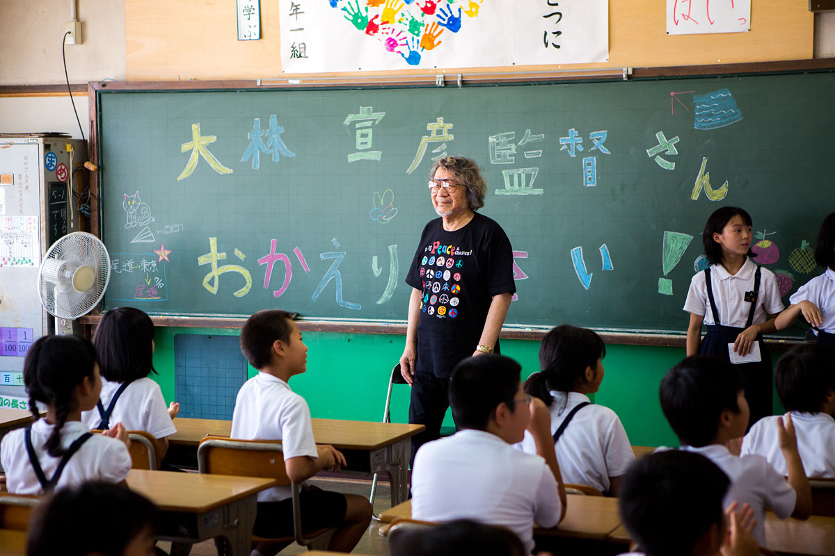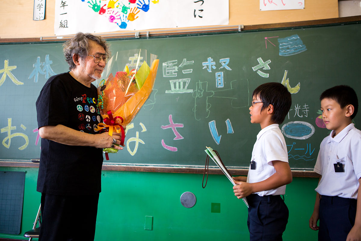 5年生の教室で、大林監督のお話を聞かせていただきました。